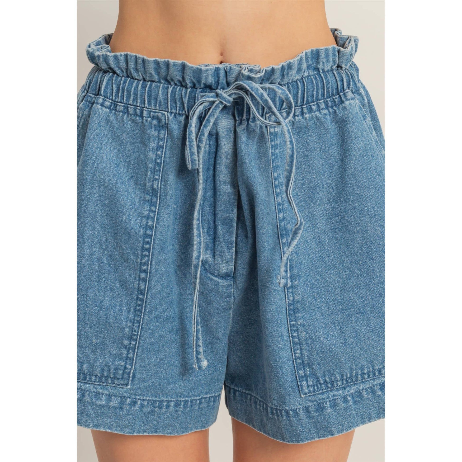 Melody Elastic Waist Pocket Denim Shorts